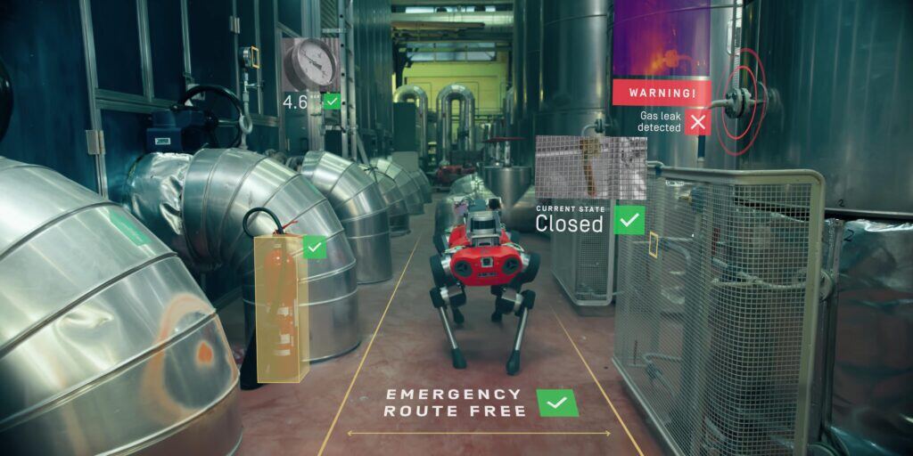 Ausgestattet mit fortschrittlichen Sensoren und KI-Technologie navigiert ANYmal autonom durch komplexe Gelände und verbessert so sowohl die Sicherheit als auch die betriebliche Effizienz.